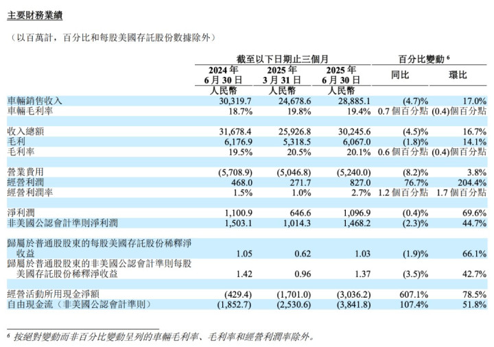 在车市竞争愈加激烈的情况下,零跑交出了一份超预期的半年答卷。数据显示:2025年上半年,零跑营收242.5亿元,同比增长174.1%;净利润0.3亿元,首次实现半年度利润转正;汽车毛利率达到了14.1%,同比增长13%。