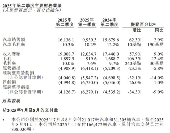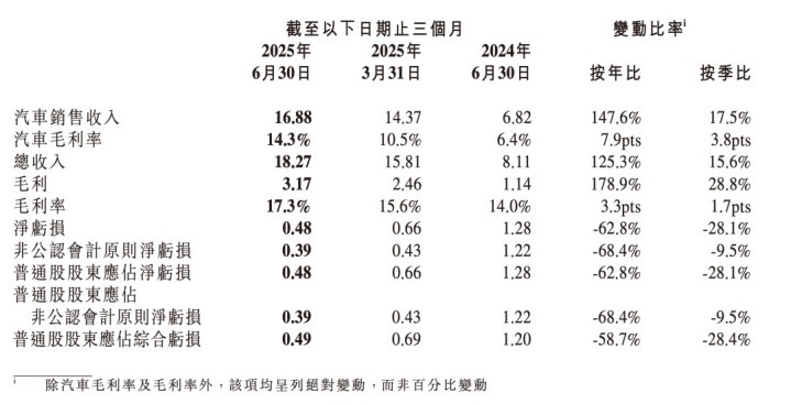 今年上半年,小鹏财报表现亮眼,多项核心指标展现出强劲的增长动能。数据显示:小鹏上半年总收入340.9亿元,同比大涨132.5%。其中,汽车销售收入312.5亿元,同比增长152.8%;汽车毛利率达到12.6%,连续8个季度改善;净亏损11.4亿元,与去年同期相比有所收窄;现金储备达到了475.7亿元。