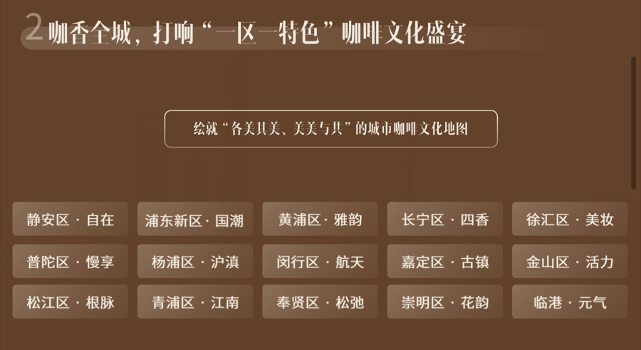 除主会场之外,本次咖啡文化节还将联动全市各区,推出主题鲜明、业态丰富、特色突出的系列活动。
