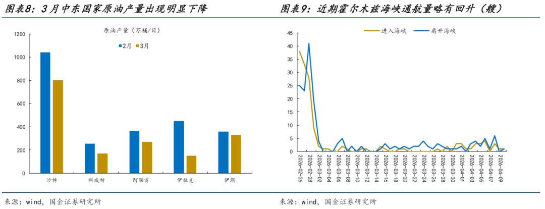 我们在上周周报《市场当前并非稳态》中提出未来可能出现两种场景:(1)随着政治成本的不断上升,在到达承诺约定日期或实现部分成果时宣布“胜利”后草草退出战事;(2)进入“地面战”后,战事持久化,美国被迫卷入泥潭无法脱身。目前来看,随着美伊双方进入为期两周的停火窗口并开启谈判,尽管双方仍然存在分歧点,但第一种场景出现的概率正在上升。当下的情形更类似于“海峡迎来了开放的消息,但是尚未完全放开”,近期霍尔木兹海峡通航量略有回升但相比战前水平仍相距甚远。尽管金融市场已经做出了快速反应,但现实层面上,供给的修复节奏往往较为缓慢。一方面,产能的恢复本身存在客观时间约束,供给释放难以一蹴而就;另一方面,航运公司可能也需要时间确认风险消除后才会开始通航;第三,各国的能源补库也许会陆续启动。在此情景下,能源价格中枢大概率出现上移,能源问题依然是当下主要矛盾。