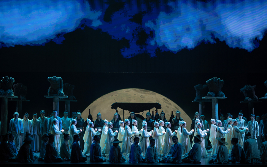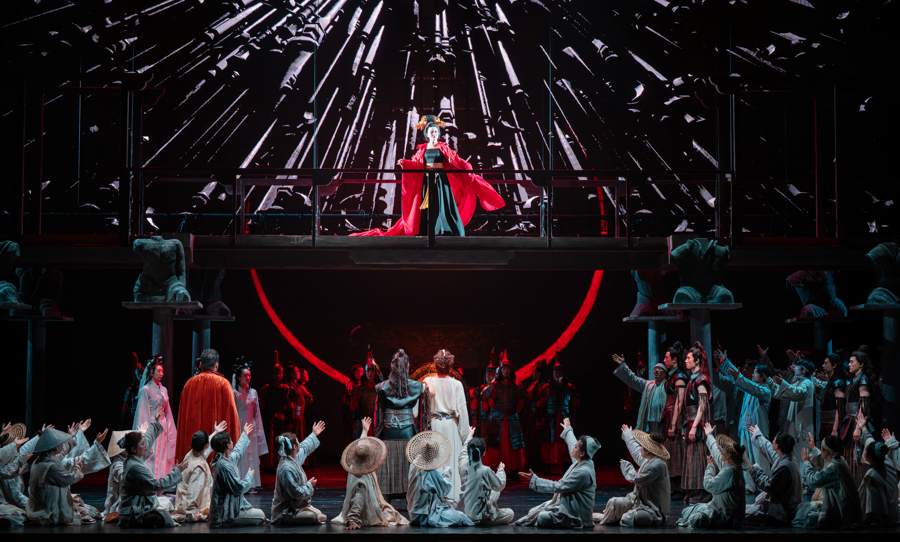 《图兰朵》首演100周年之际,上海歌剧院再度呈现这部歌剧经典,4月24日至26日在上音歌剧院连演三场,全部售罄,应观众要求开放加座后,也迅速告罄。舞台上,歌楼舞榭、刀光剑影、书山辞海间,人物的命运起伏变化。百年前这部东西方艺术交融的经典,在今天的上海迎来动人的回响。